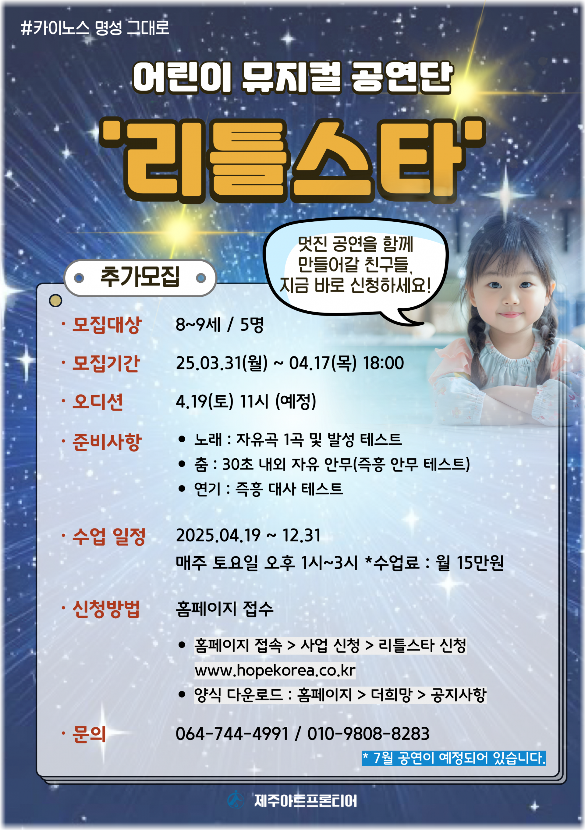 - 제출 서류 : 리틀스타 단원 신청서